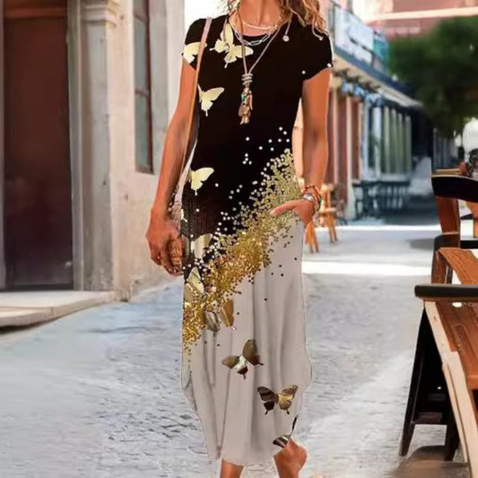 ✨Γυναικεία μακριά φορέματα με τυπωμένα t-shirt-GR