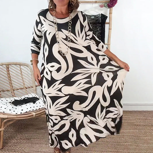 🌸Elegantiškos moteriškos suknelės su abstrakčiais raštais ir septyniomis rankovėmis-LT