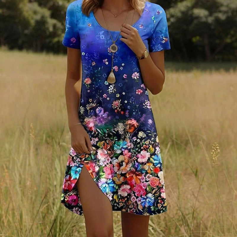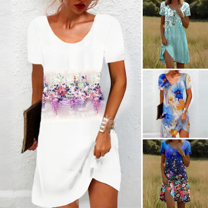 Ženska vsakodnevna obleka s cvetličnim vzorcem-SI