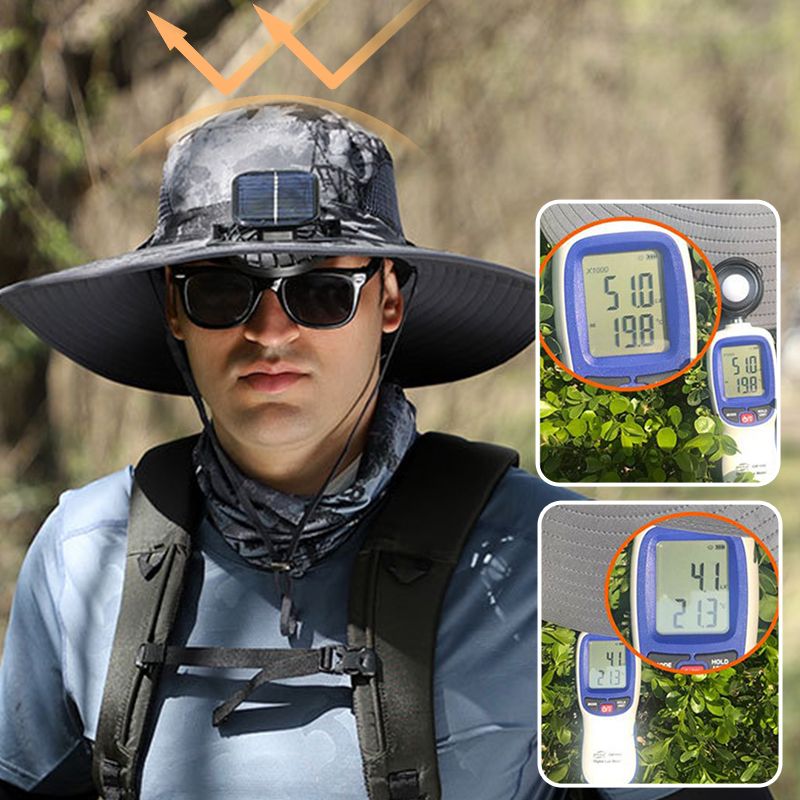Ventiliatoriai užtikrina nuolatinį oro srautą, kad net karščiausiomis dienomis jaustumėtės vėsiai ir patogiai. Atsisveikinkite su prakaituotais ir nepatogiais nuotykiais lauke – mūsų žvejo kepurė jus gaiviai vėsins visą dieną.