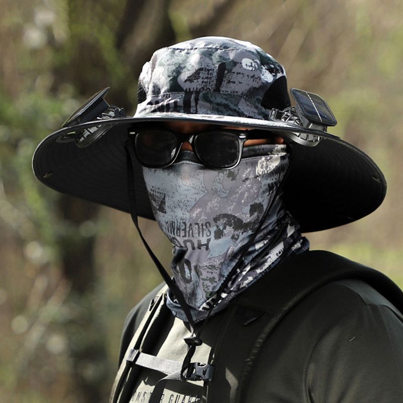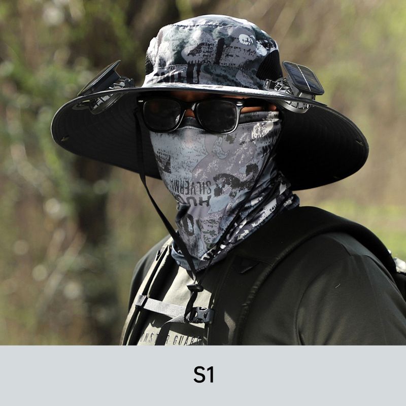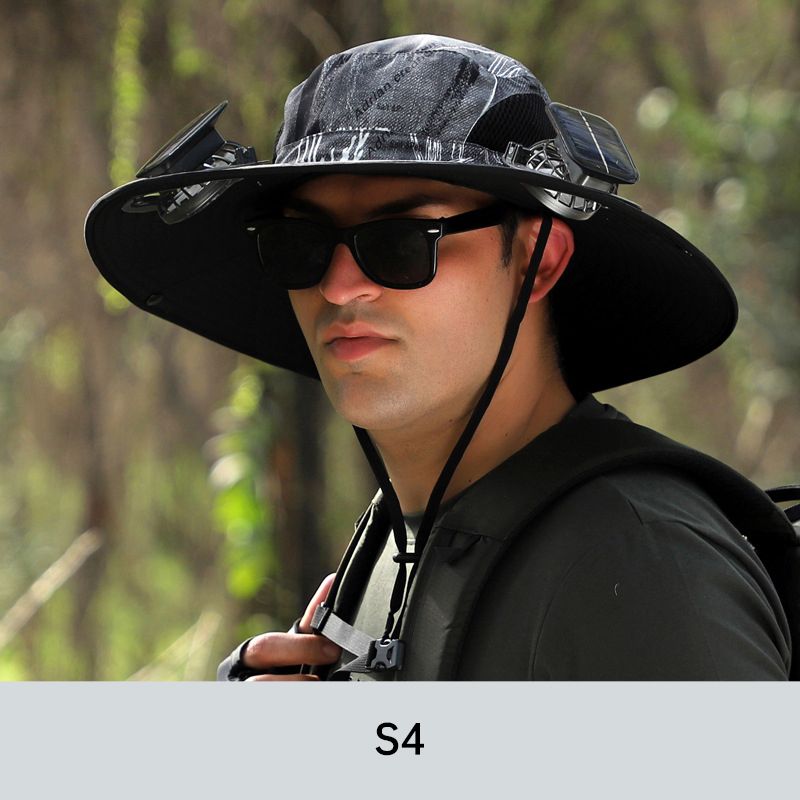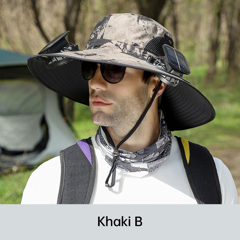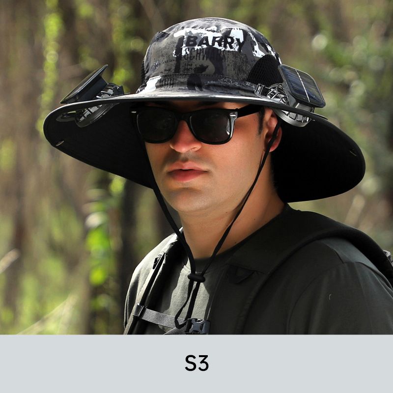 Vyriška žvejybinė kepurė su 2 nuimamais saulės ventiliatoriais-LT