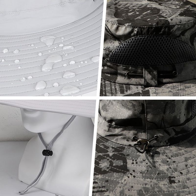 Pagaminta iš patvarių ir kvėpuojančių medžiagų, žvejo kepurė puikiai apsaugo nuo saulės dėl plataus snapelio, apsaugančio veidą ir kaklą nuo kenksmingų UV spindulių. Integruotas apsauginis kremas nuo saulės suteikia UPF 50+ apsaugą, užtikrindamas maksimalų padengimą ir ramybę saulėtomis dienomis.