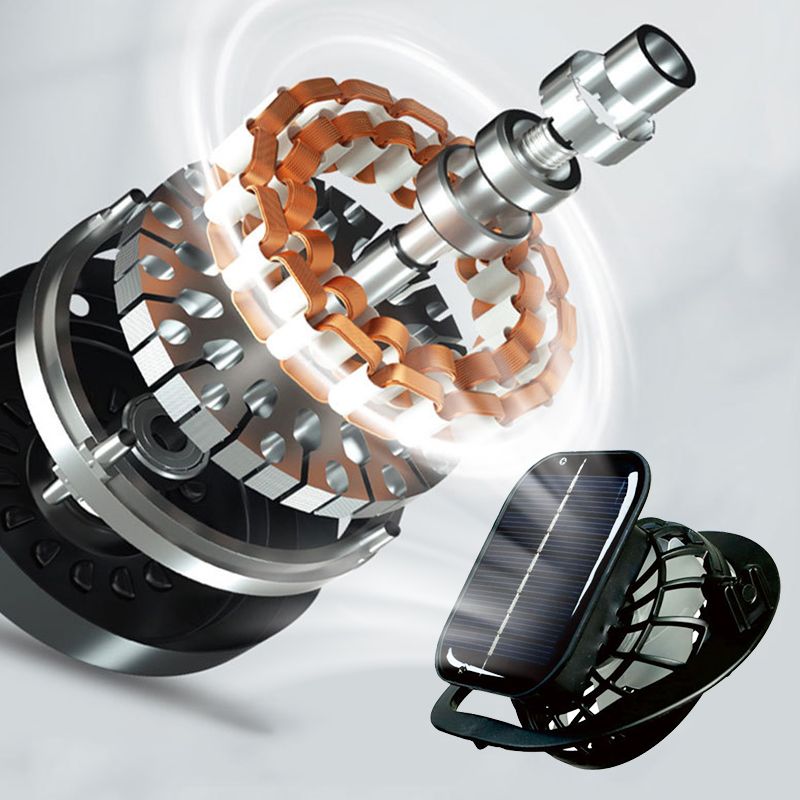NUIMAMI SAULĖS VENTILIATORIAI: 2 saulės ventiliatoriai užtikrina nuolatinį oro srautą, kad būtų užtikrintas maksimalus vėsinimo komfortas. Nuimamas dizainas leidžia lengvai įkrauti ir išplauti.