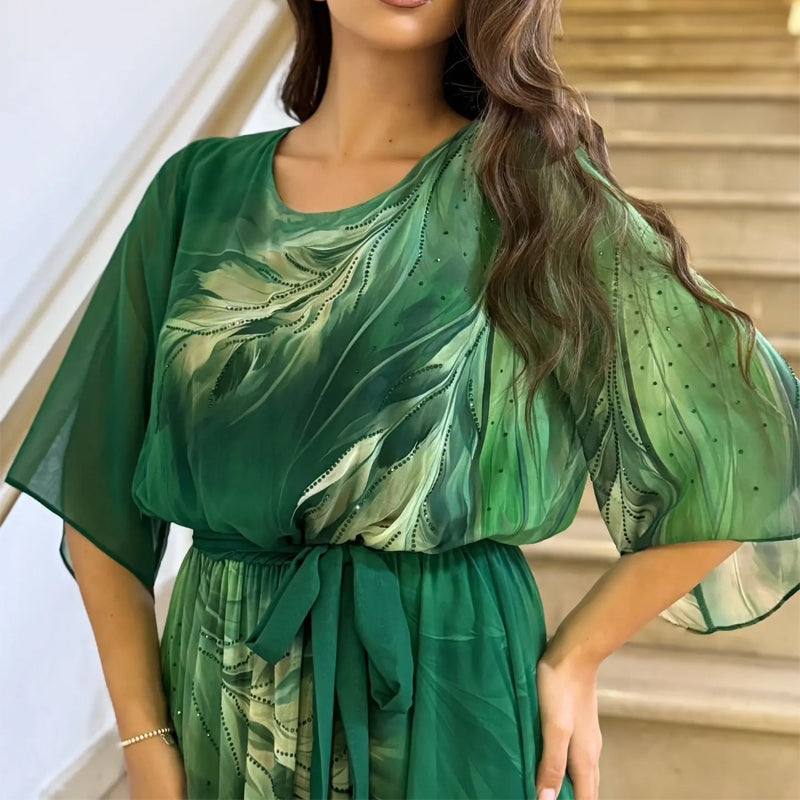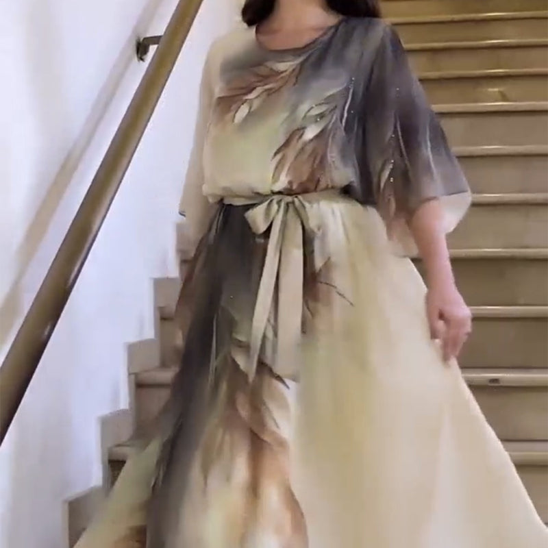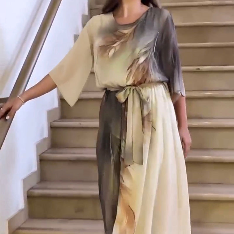 ΚΟΜΨΟ ΚΑΙ ΡΕΥΣΤΟ ΦΙΝΙΡΙΣΜΑ – Αυτό το μάξι φόρεμα με στρογγυλή λαιμόκοψη διαθέτει ρέουσα σιλουέτα και μοναδικό, ακανόνιστο τύπωμα, προσφέροντας μια εκλεπτυσμένη κομψότητα τόσο για casual όσο και για επίσημες περιστάσεις. Το ελαφρύ ύφασμα εξασφαλίζει άνεση και στυλ όλη μέρα.