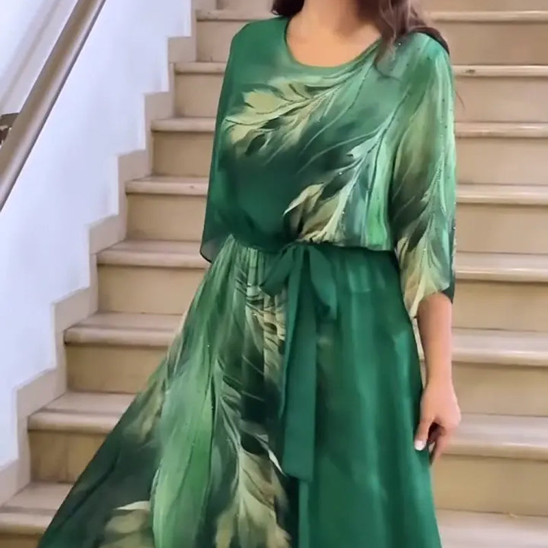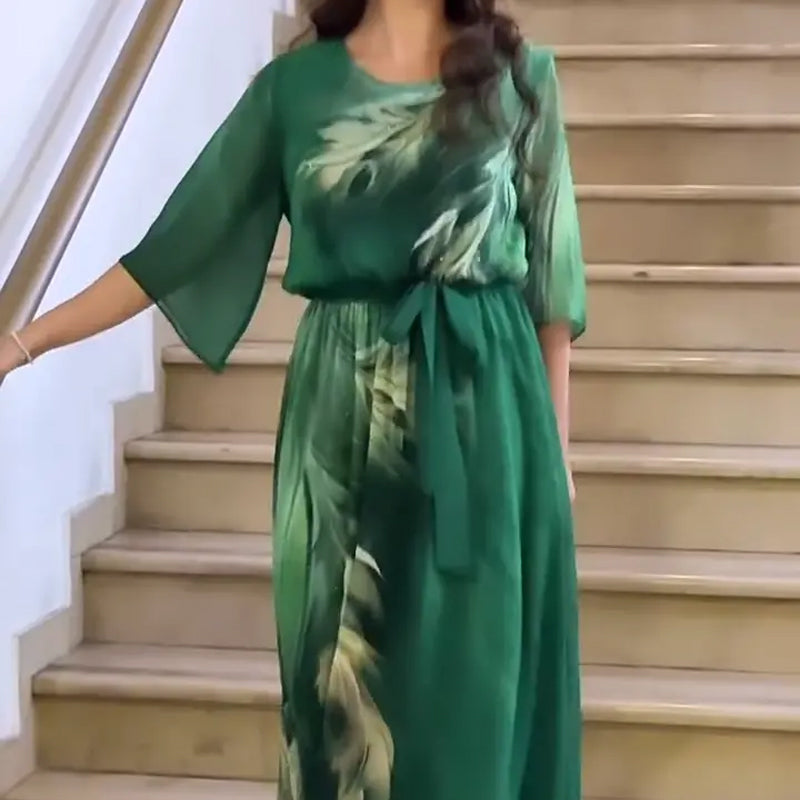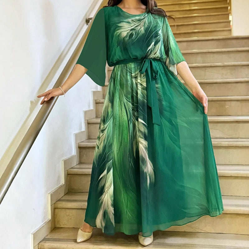 Περιεχόμενα συσκευασίας: 1×μαξι φόρεμα με στρογγυλή λαιμόκοψη και τύπωμα και ζώνη