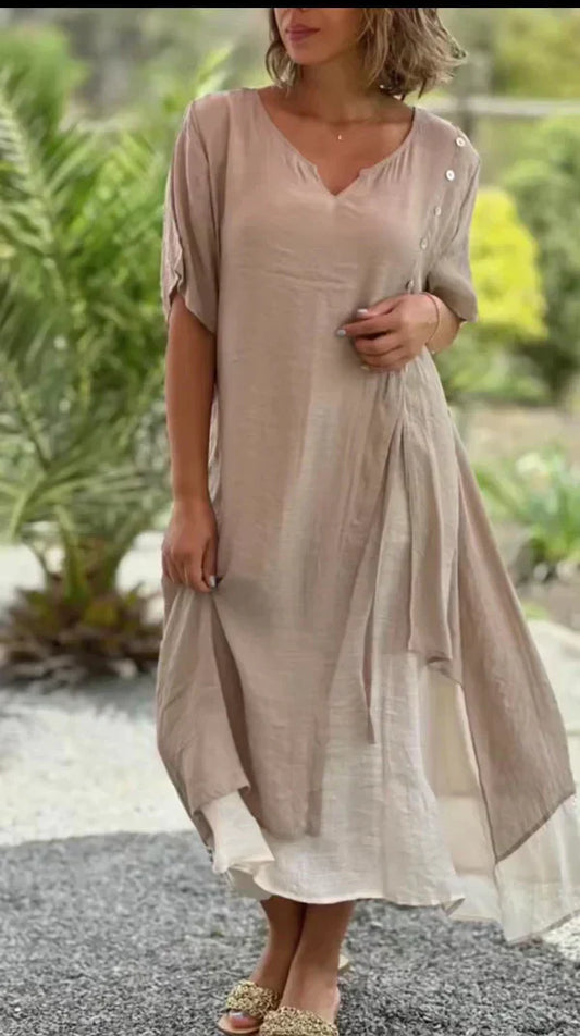 Lažna dvodelna asimetrična obleka s kratkimi rokavi-SI