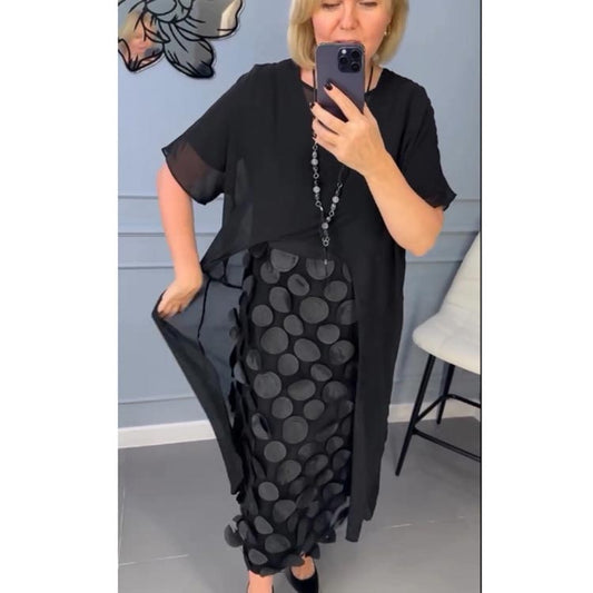 Moteriška laisva maksi suknelė su skeltuku ir be klosčių-LT