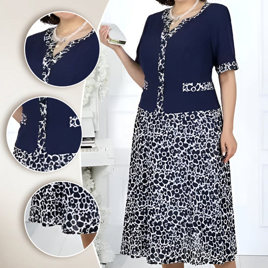 Moteriška elegantiška dviejų dalių suknelė iš dirbtinio audinio su gėlių raštu-LT
