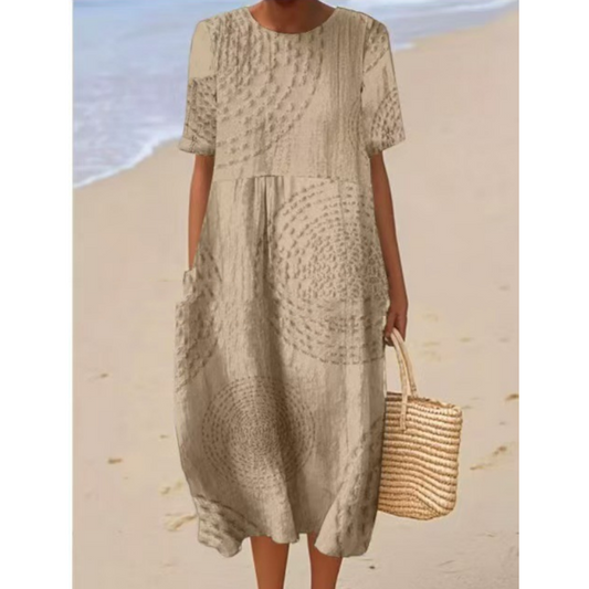 Moteriška klostuota suknelė su trumpomis rankovėmis ir kišenėmis-LT