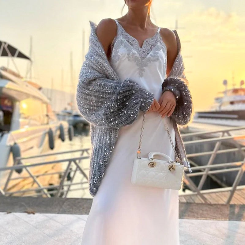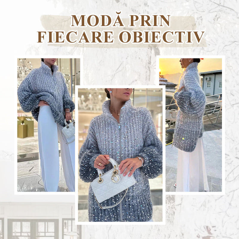 【✨Novi prihodi 2025】🌈Ženski pleten pulover z bleščicami in polno zadrgo-SI