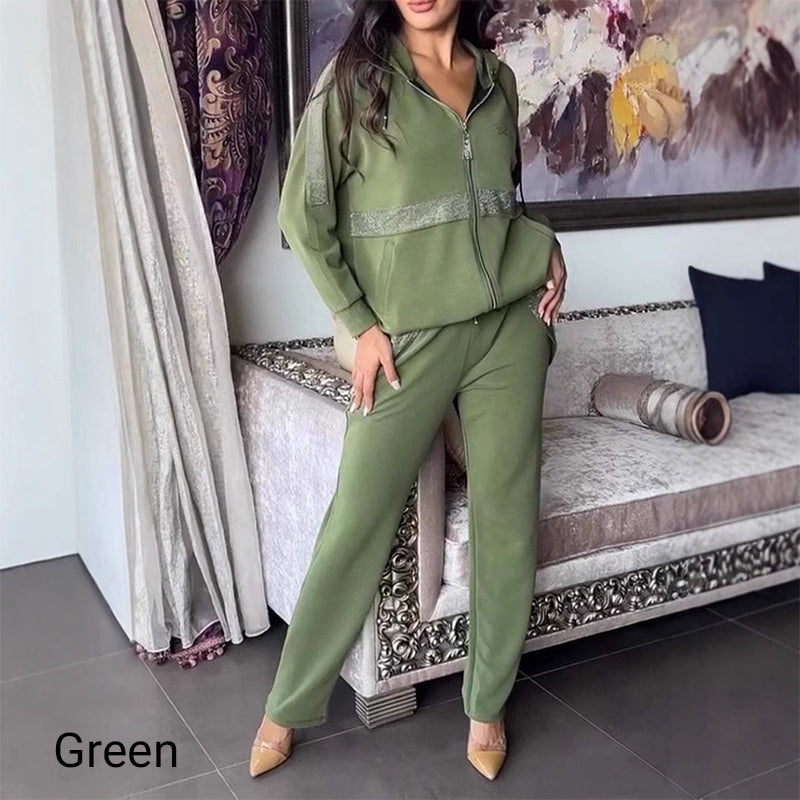 Į paketą įeina: 1 * Moteriškas dviejų dalių blizgučiais puoštas vienspalvis rinkinys