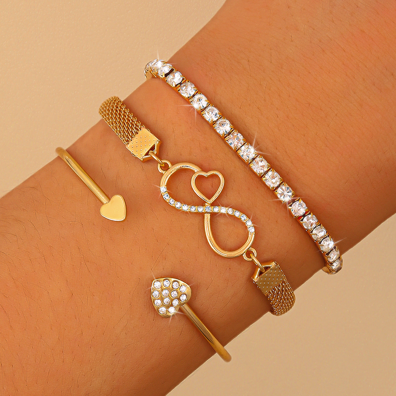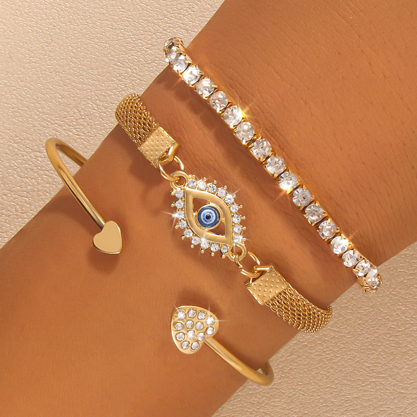 Šis trijų dalių bohemiškas auksinių apyrankių rinkinys puikiai derina eleganciją, žavesį ir stilių, užtikrindamas įsimintiną įvaizdį kiekvienai progai. Šios apyrankės suteiks prabangos bet kokiai aprangai. Nesvarbu, ar einate į vakarinį renginį, ar norite pagražinti savo kasdienį įvaizdį, šios apyrankės pavers jus dėmesio centru.