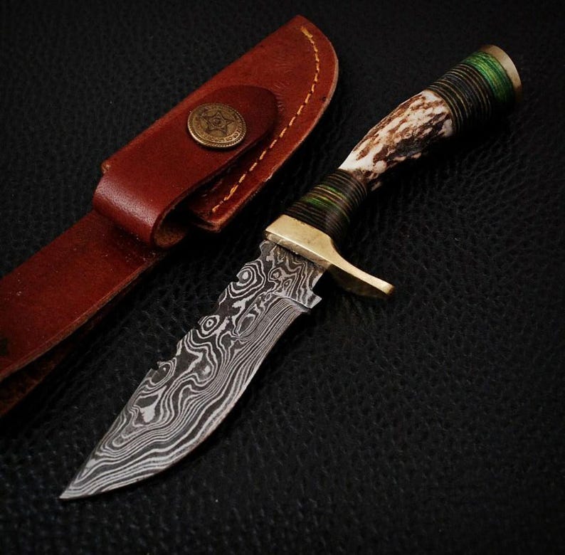 Χειροποίητο μαχαίρι από ατσάλι Δαμασκού, μήκους 15 cm, με λαβή κόρνας.-GR
