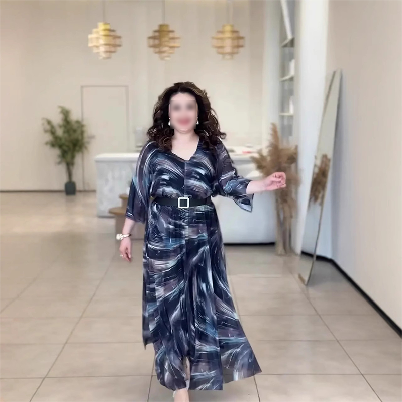 Į pakuotę įeina: 1* moteriška elegantiška V formos iškirptės raštuota suknelė