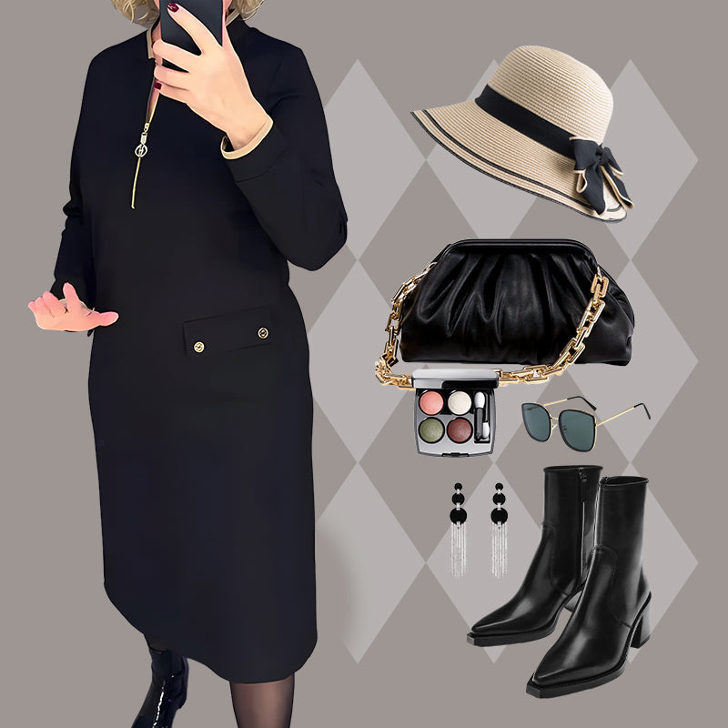 Į pakuotę įeina: 1 * Elegantiška juoda suknelė ilgomis rankovėmis moterims