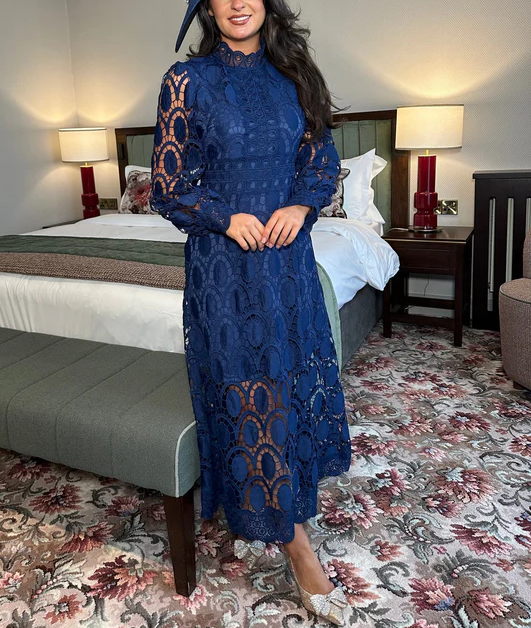 Moteriška midi suknelė su elegantiška, erdvia iškirpte-LT