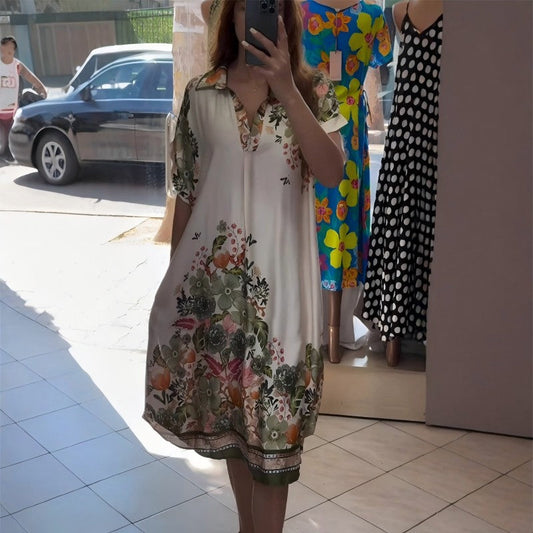Ohlapna cvetlična obleka z V-izrezom-SI