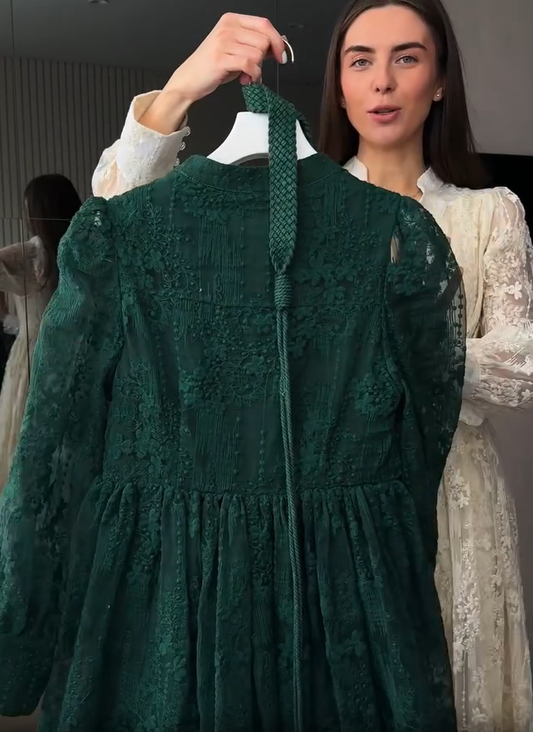 Moteriška suknelė su V formos iškirpte, gausiai siuvinėta-LT