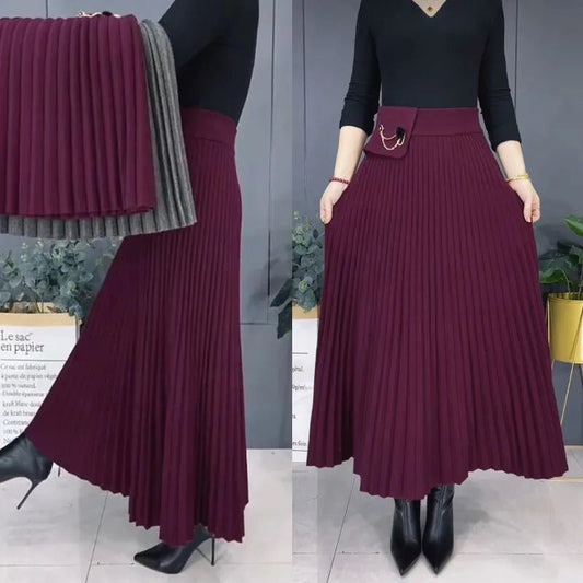 Elegantiškas vienspalvis minkštas klostuotas A formos sijonas-LT