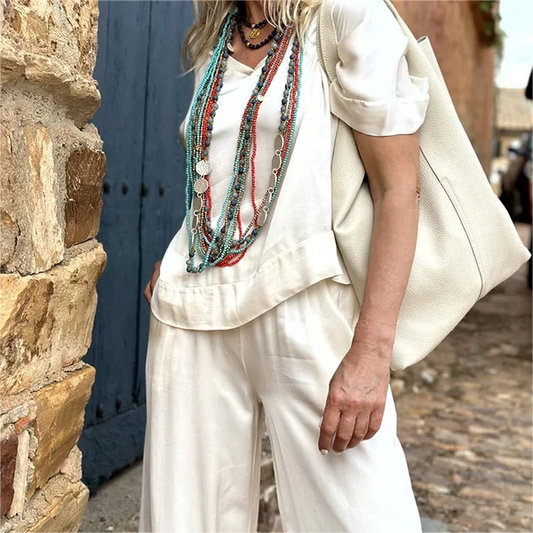 Γυναικεία κάζουαλ φόρμα με φαρδύ V λαιμόκοψη-GR