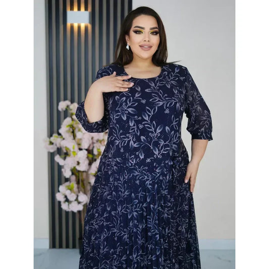 Apvalia iškirpte, 3/4 rankovėmis marginta maksi suknelė-LT