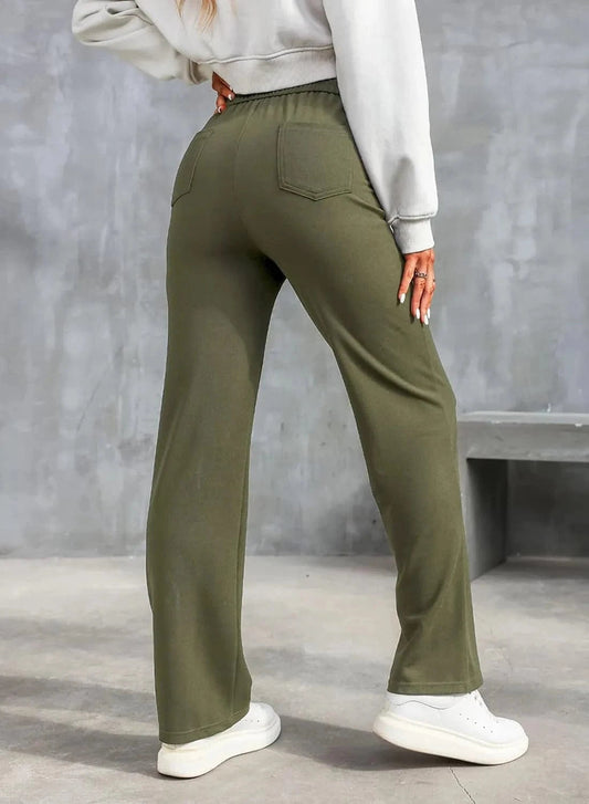 Elastinės laisvalaikio kelnės aukštu juosmeniu-LT