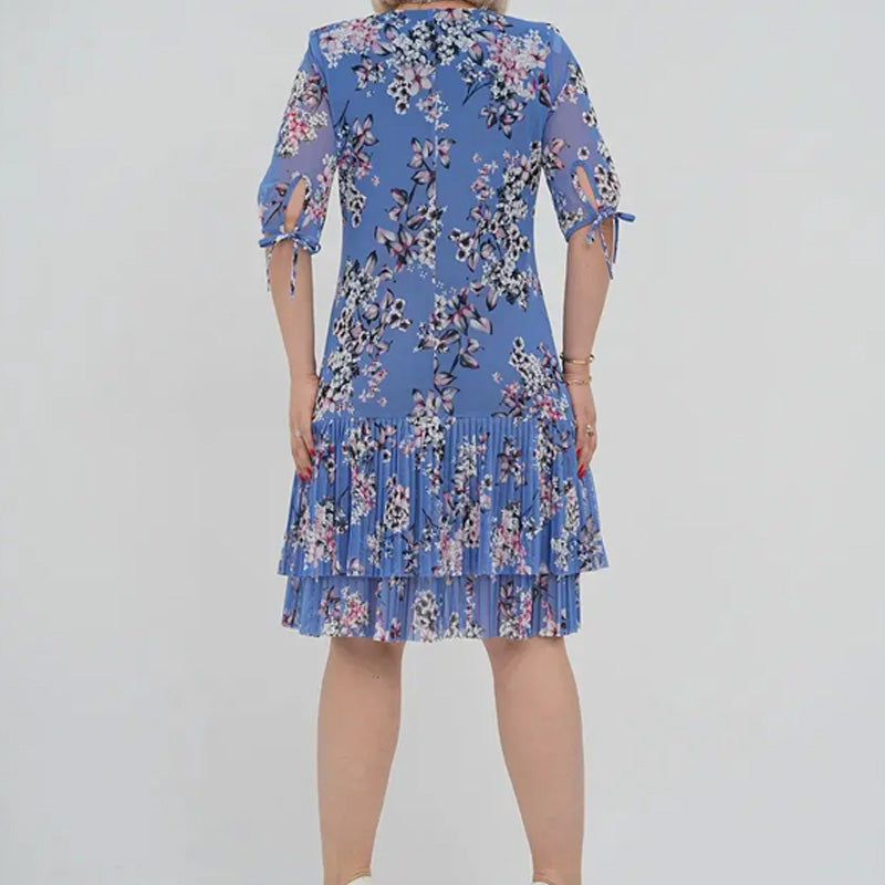 Elegantiška moteriška ilga suknelė trumpomis rankovėmis, klostuota-LT