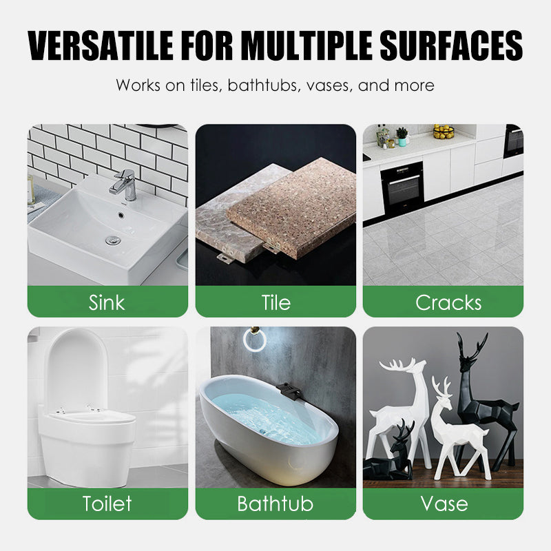 ΕΠΙΣΚΕΥΑΖΕΙ ΤΑ ΠΑΝΤΑ – Ραγισμένα πλακάκια; Κατεστραμμένες μπανιέρες; Θραύσματα βάζων που πέφτουν; Κατάλληλο για κεραμικά, πορσελάνη και άλλες επιφάνειες, αυτό το προϊόν προσφέρει μια καθολική λύση για επισκευές στο σπίτι. Μην πετάτε κατεστραμμένα αντικείμενα – απλώς επισκευάστε τα και εξοικονομήστε χρήματα.