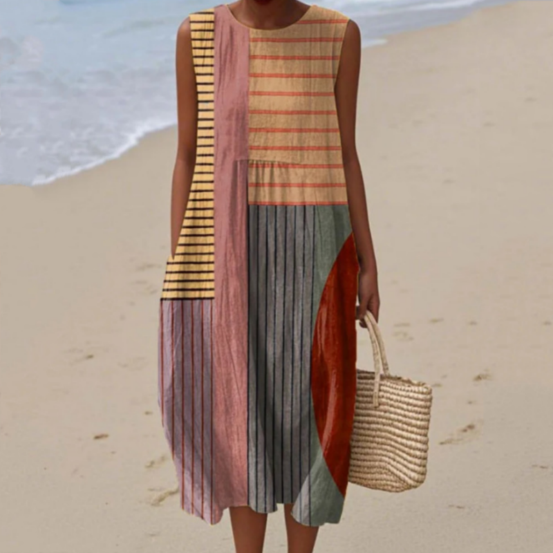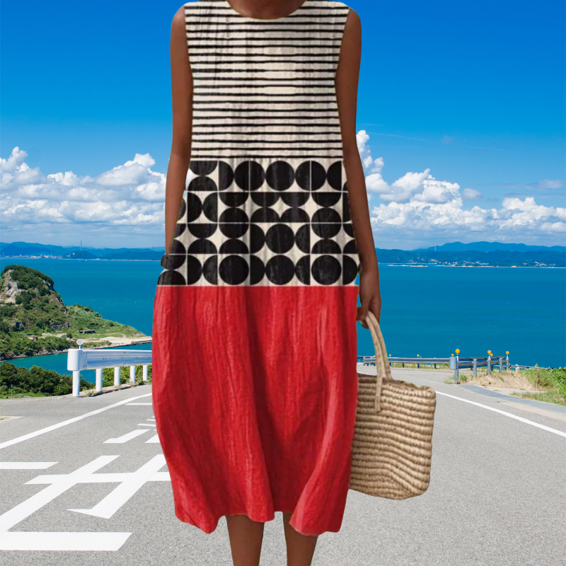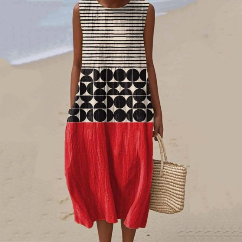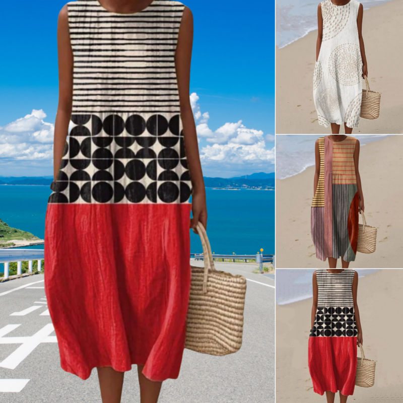 ELEGANTEN KROJ BREZ ROKAVOV - Ta obleka brez rokavov je idealna za toplo vreme. Ostanite hladni in elegantni, hkrati pa uživajte v svobodi gibanja, zato je idealna za sončne dni ali počitnice.