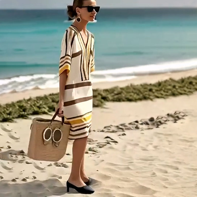 【S-3XL】👗Moteriška dryžuota suknelė su V formos iškirpte-LT
