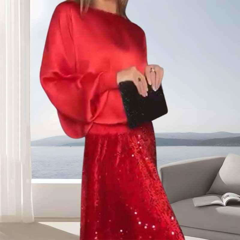 Kaheosaline pikkade varrukate ja litritega naiste seelik-EE