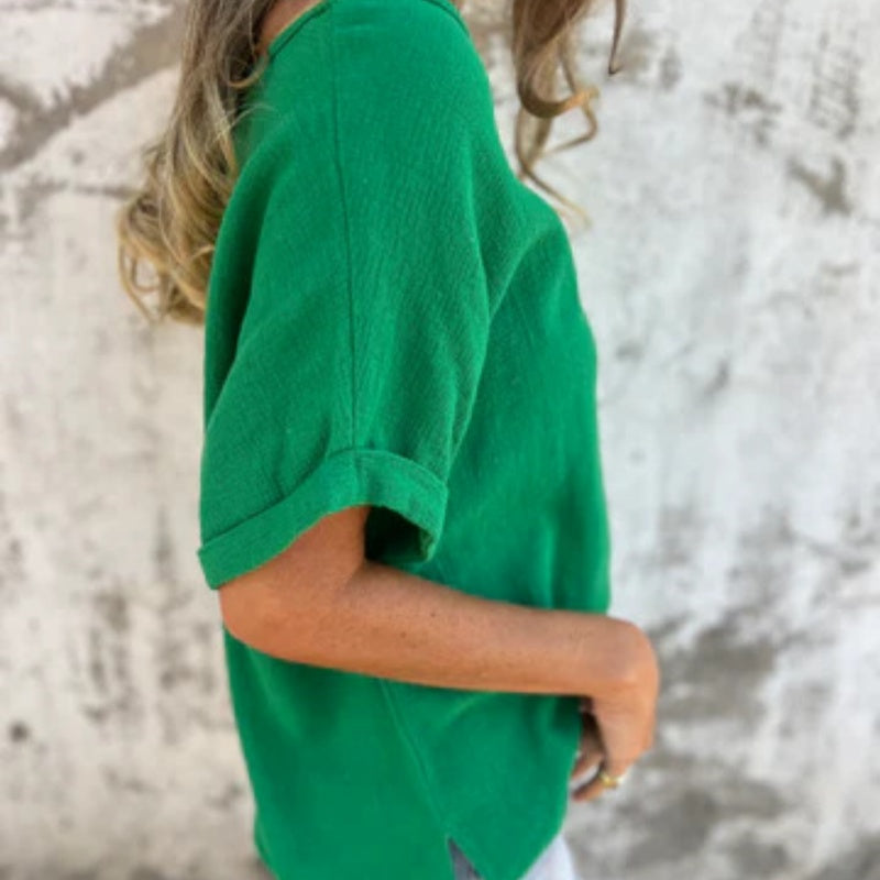 Μονόχρωμο τοπ με στρογγυλή λαιμόκοψη και κοντομάνικο τελείωμα-GR