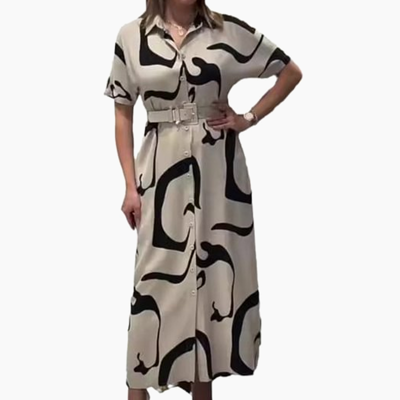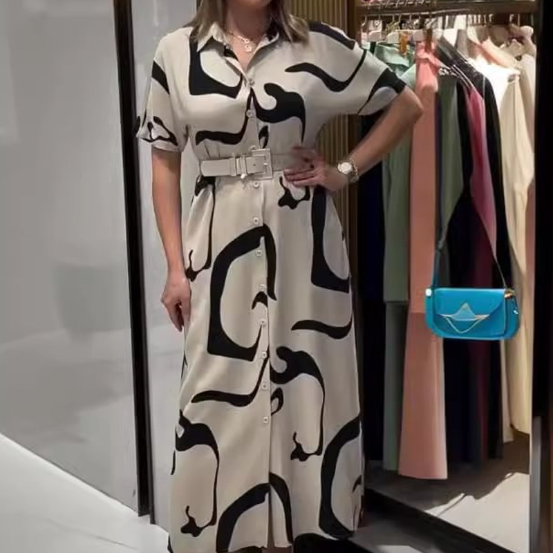 Moteriška marginta trumpomis rankovėmis ilga suknelė-LT