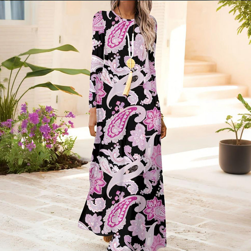 1 * Moteriška ilgarankovė suknelė su 3D spauda