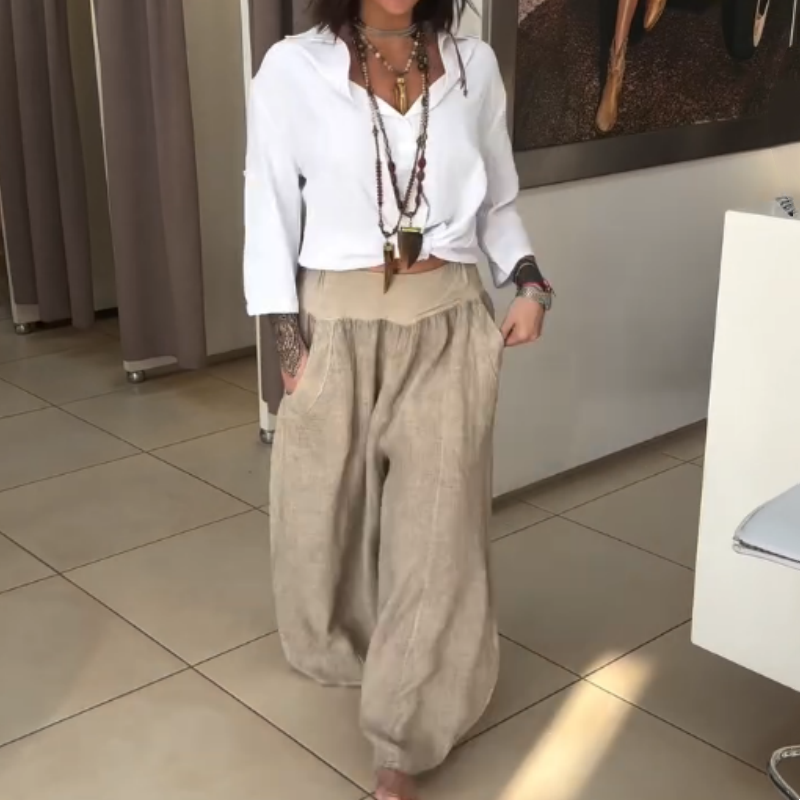 ✨Γυναικείο ελαστικό φαρδύ παντελόνι με τσέπες-GR