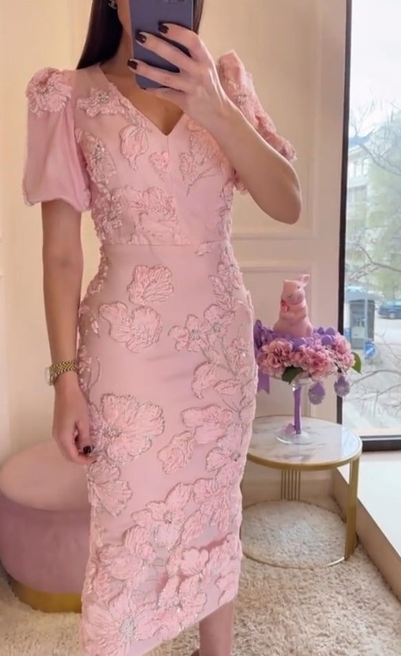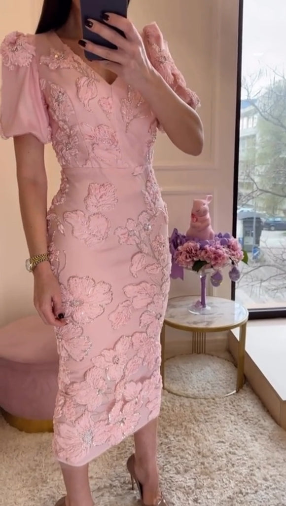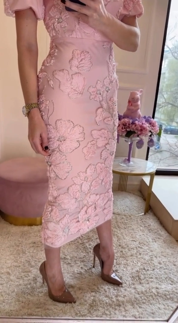 Κομψό γυναικείο καλοκαιρινό φόρεμα με κεντημένα λουλούδια και κρύσταλλα-GR