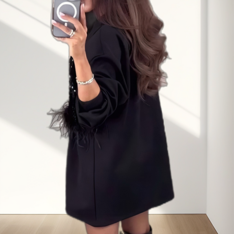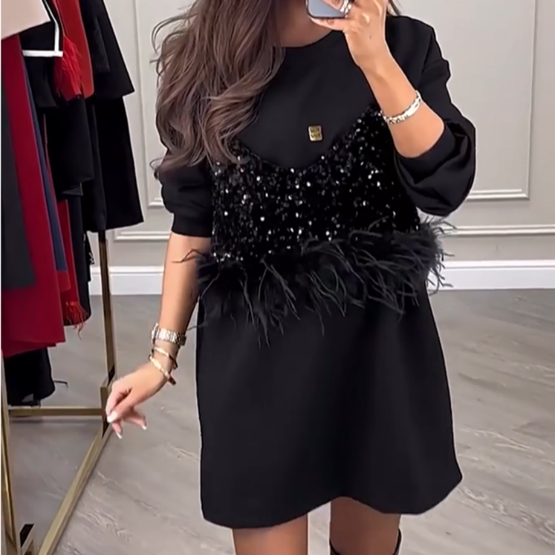 ΜΟΝΤΕΡΗ ΕΜΦΑΝΙΣΗ FEATHER - Με μοντέρνες λεπτομέρειες από ψεύτικο φτερό, αυτό το φόρεμα προσθέτει ένα διασκεδαστικό αλλά εκλεπτυσμένο στοιχείο στο ντύσιμό σας, ενισχύοντας τη συνολική σας εμφάνιση.