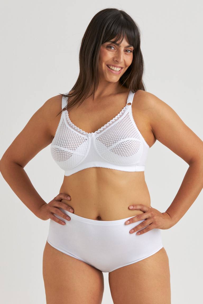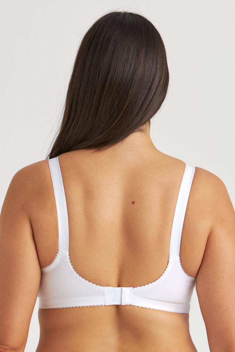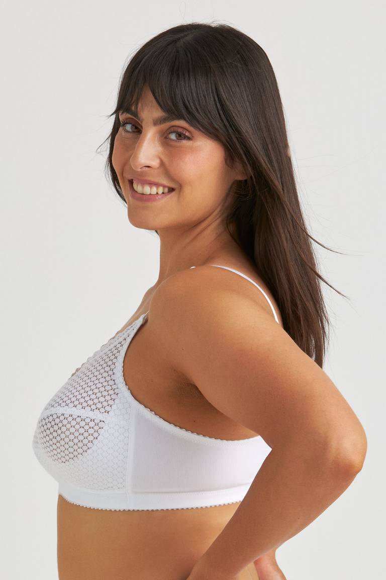 Το Cotton Dots είναι ένα βαμβακερό σουτιέν χωρίς μπανέλα που παρέχει εξαιρετική ανύψωση και στήριξη. Το πάνελ στήριξης στο κάτω μέρος των cups ανασηκώνει και διαχωρίζει το στήθος. Τα cups είναι κατασκευασμένα από ένα άκαμπτο, χωρίς ενίσχυση, γεμάτο, ευάερο βαμβακερό υλικό που επιτρέπει στο δέρμα να αναπνέει. Τα cups έχουν κόψιμο δύο τεμαχίων και ένα ελαφρώς μυτερό κόψιμο. Είναι ιδανικά ακόμη και για όσες έχουν έντονες καμπύλες - διατίθενται έως και μέγεθος cup J! Οι ελαστικοί ιμάντες ρυθμίζονται εύκολα μπροστά. Η εύκαμπτη πλάτη σε σχήμα U με ρυθμιζόμενα κουμπώματα με γάντζο και κρίκο.