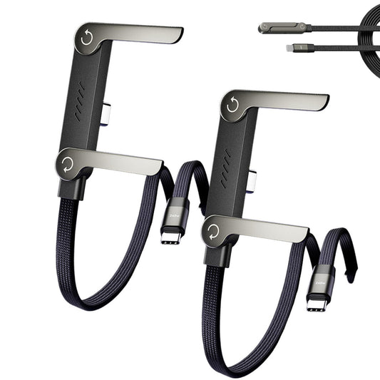 📱 240 W pintas greito įkrovimo laidas su įmontuotu telefono laikikliu – naujas 2026 m. sulankstomas patvarus USB-C tipo C laidas (2 vnt. pakuotėje)-LT
