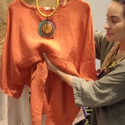 ✨Λινό τοπ με πλαϊνές τσέπες για γυναίκες με χαλαρή εφαρμογή-GR