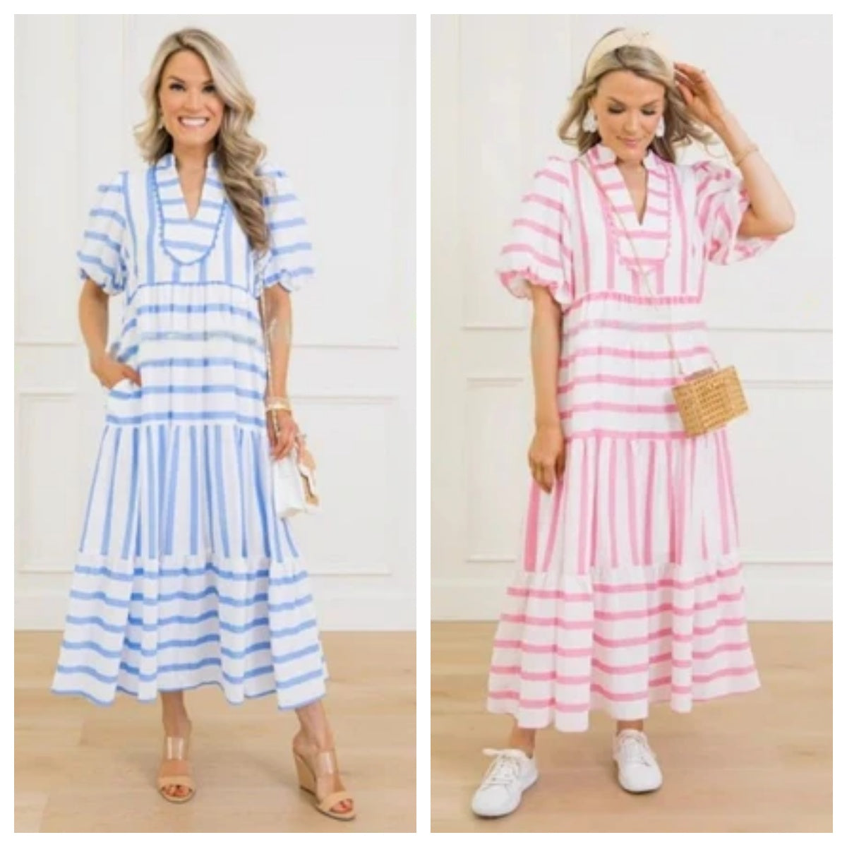 🌸Γυναικείο καλοκαιρινό ριγέ, φαρδύ, casual φόρεμα με κοντό μανίκι-GR