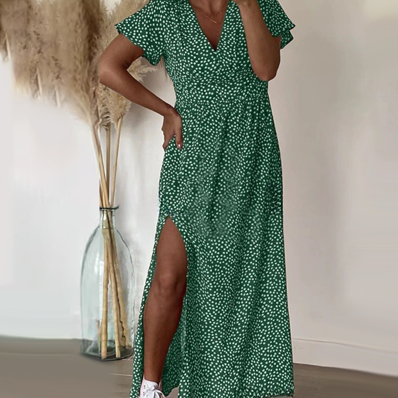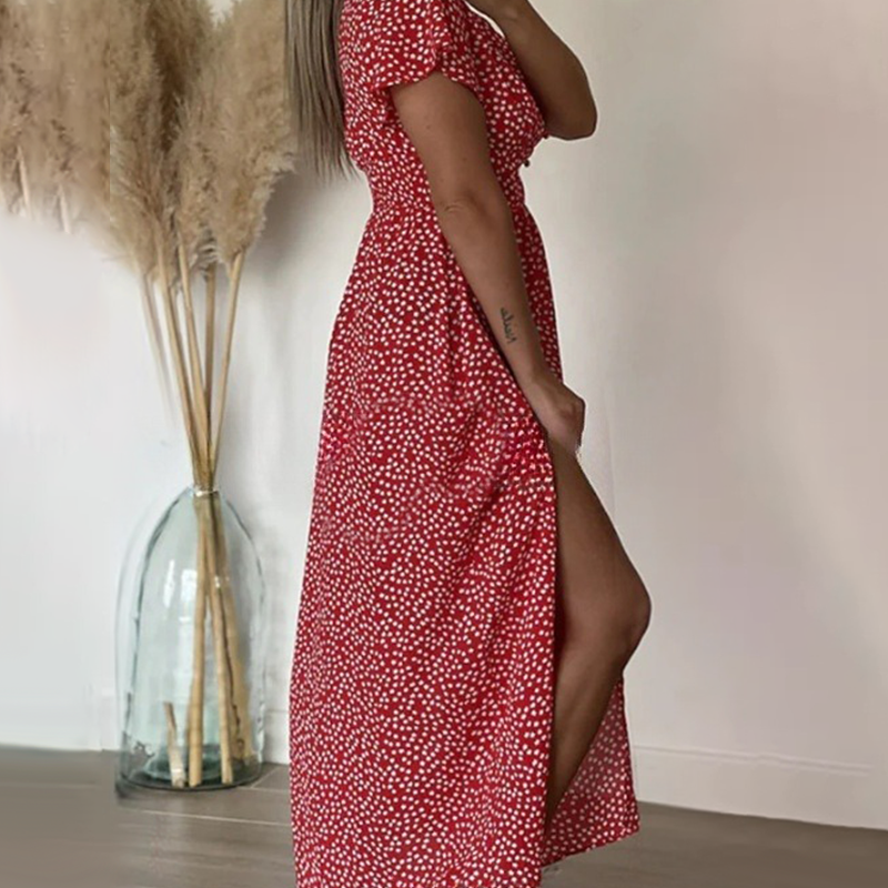 Η συσκευασία περιλαμβάνει: 1 * Γυναικείο Σέξι Φόρεμα Maxi με Πλαϊνό Σκίσιμο και Στάμπα