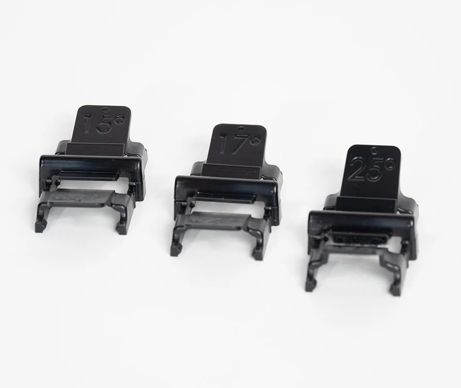 - Patentuojamas kampų kreiptuvas palaiko tikslius 20° (15°/17°/25°) kampus