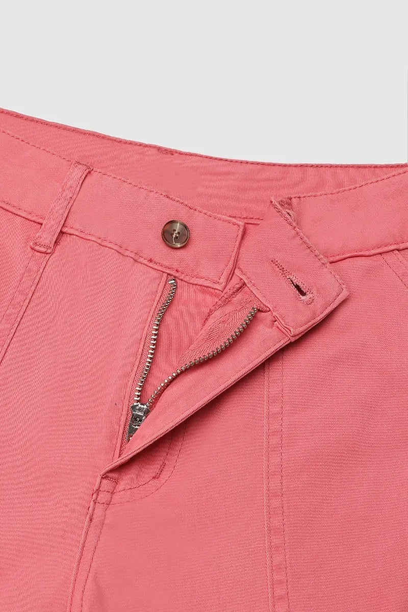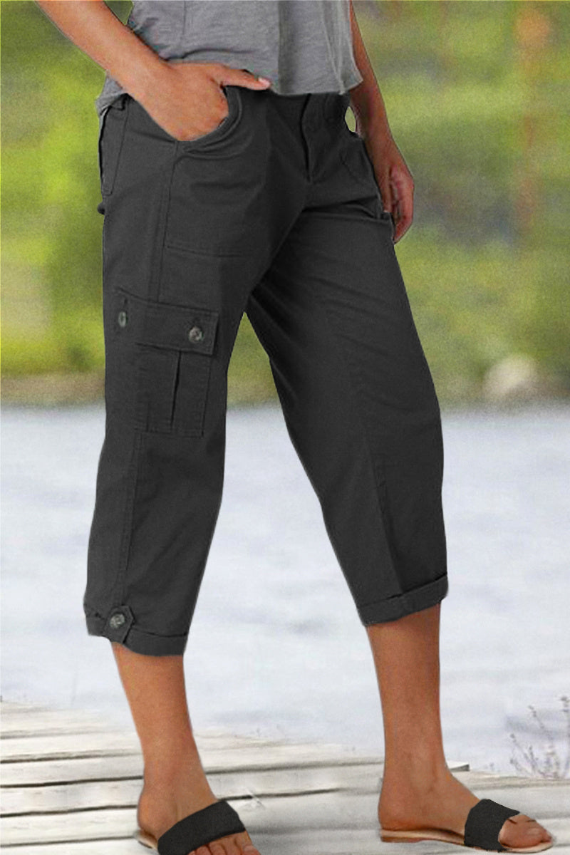 Kapri kelnės su kišenėmis ir vidutinio aukščio juosmeniu, klostėmis apačioje ir keliomis kišenėmis-LT