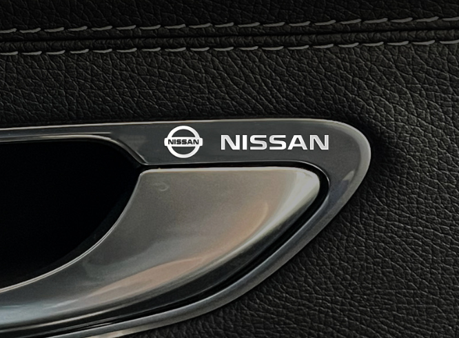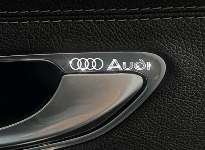 Kūrybingi metaliniai automobilių lipdukai, paryškinantys dinamišką interjerą ir individualias dekoratyvines juosteles.