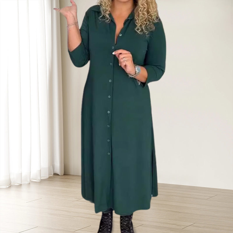 Į komplektą įeina: 1 * Ilgomis rankovėmis suknelė su sagomis užsegama atlape
